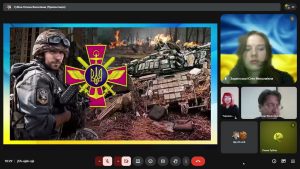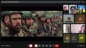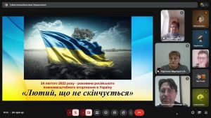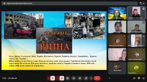 💙💛 Під час заходу лунали поетичні рядки про «лютий, що триває», та демонструвалися відеоматеріали про перші години вторгнення і мужність воїнів ЗСУ. Сьогодні нам треба гуртуватися, допомагати один одному, нашому війську та державі. Нехай пам’ять про полеглих дасть нам силу для зміцнення власної держави на власній землі.