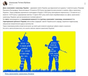 Це день подяки воїнам-захисникам та захисницям, добровольцям, волонтерам, ветеранам та всім, хто своєю жертовністю і щоденною працею наближає Перемогу України. Саме завдяки їх силі духу, патріотизму та незламній вірі ми маємо можливість навчатися, працювати й будувати плани на майбутнє.