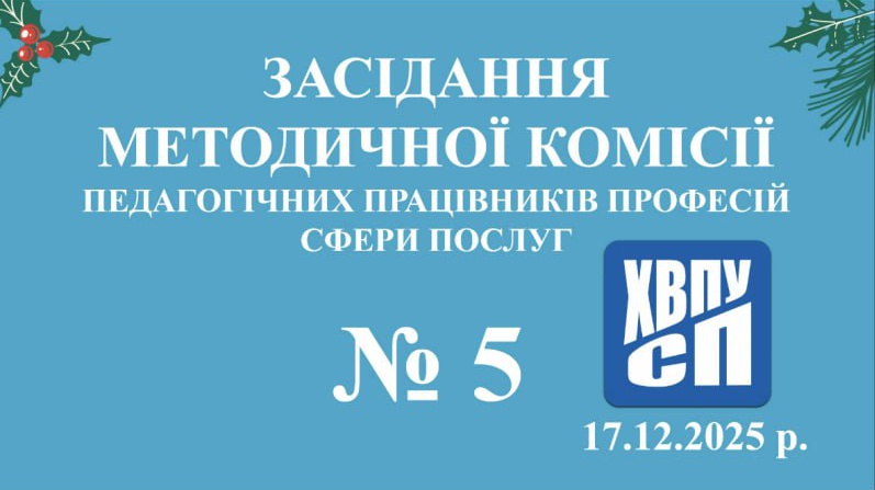 17.12.2025 в Харківському вищому професійному училищі сфери послуг було проведене засідання методичної комісії педагогічних працівників із професій сфери послуг – «Касир (в банку)», «Оператор поштового зв’язку», «Манікюрник. Педикюрник», «Візажист», «Адміністратор» під головуванням Апалькової Тетяни та у присутності адміністрації училища, присвячене підведенню підсумків освітнього процесу за І-й семестр 2025-2026 н.р.
