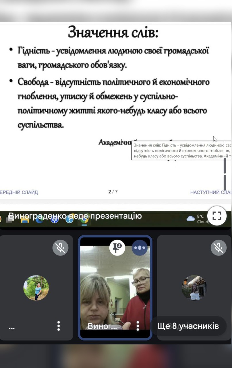• Формування ціннісних орієнтирів здобувачів освіти визначено ключовим пріоритетом виховної діяльності. Доповідь із цього питання представила заступник директора з НВихР Рита КАРПЕНКО.
