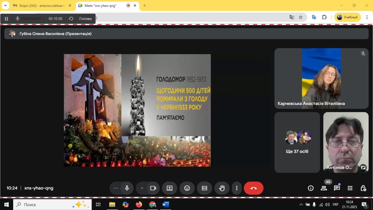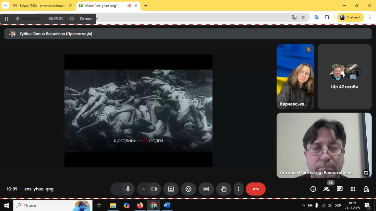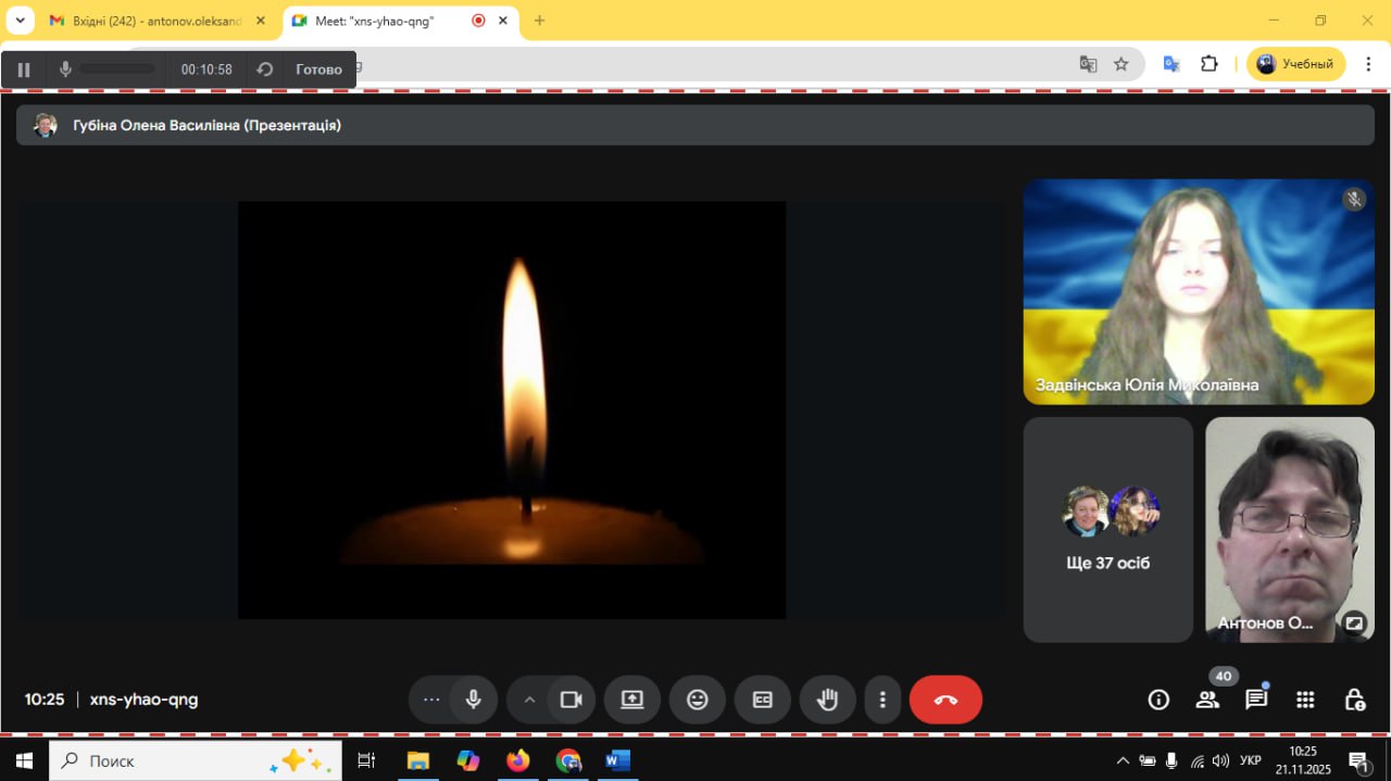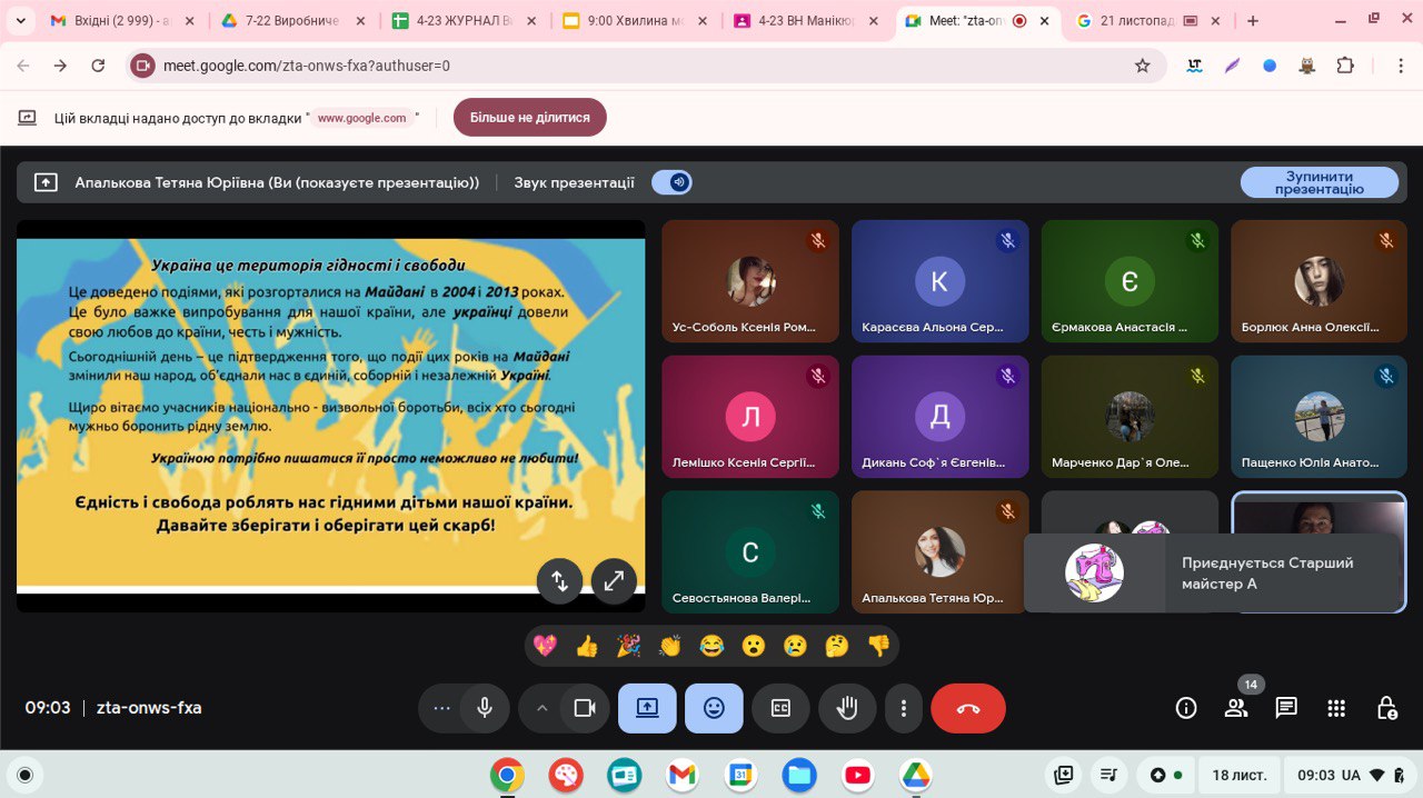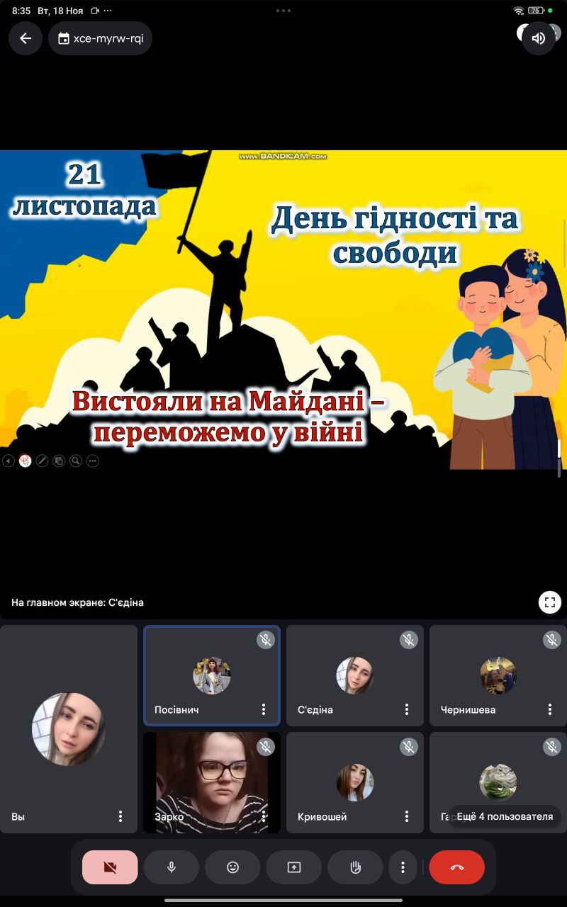 18 листопада 2025 року викладач фізичної культури Ольга Шитєєва провела відкритий спортивний захід «День Здоров’я» зі студентами групи 21-25, який відбувся в онлайн-форматі на платформі Google Meet.