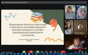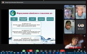 - Формування ціннісних орієнтирів здобувачів освіти визначено ключовим пріоритетом виховної діяльності. Доповідь із цього питання представила заступник директора з НВихР Рита КАРПЕНКО.