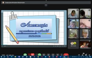 - Секретар атестаційної комісії Ірина Самара представила аналітичну довідку про хід атестації у 2025/2026 н.р. Заплановано вивчення педагогічного досвіду тих, хто атестується, і продовження створення Бази Досвіду на спільному електронному ресурсі.