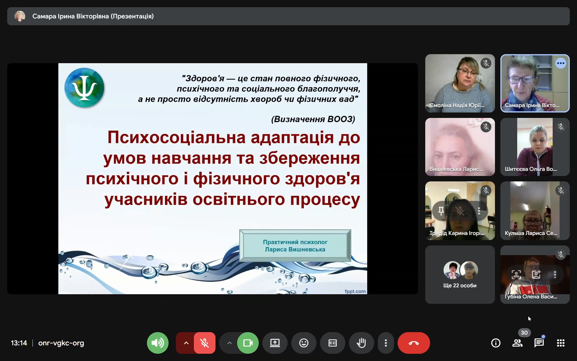 - Практичний психолог Лариса ВІШНЕВСЬКА виступила з обговоренням питань психосоціальної адаптації до умов навчання та збереження психічного і фізичного здоров’я.