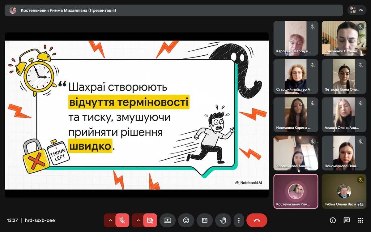 • «Кібергігієна: як захиститися від фішингу» – опанували техніки розпізнавання підробних сайтів та повідомлень, що мають на меті викрадення паролів.