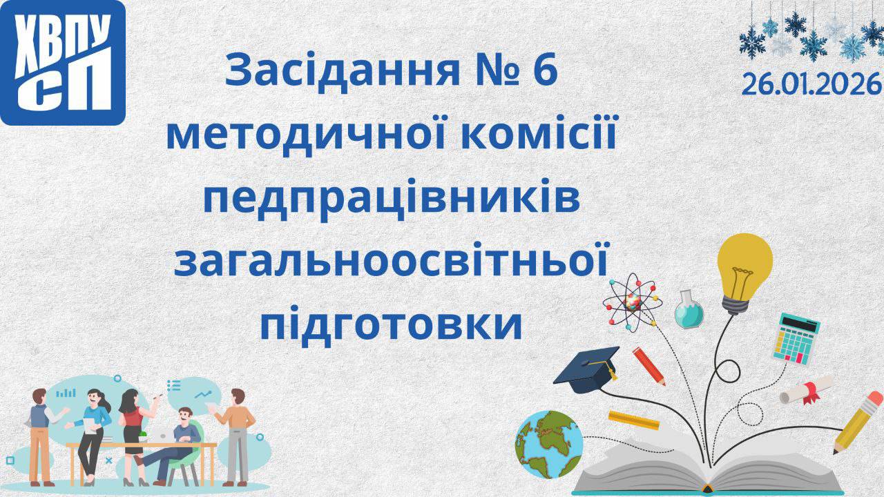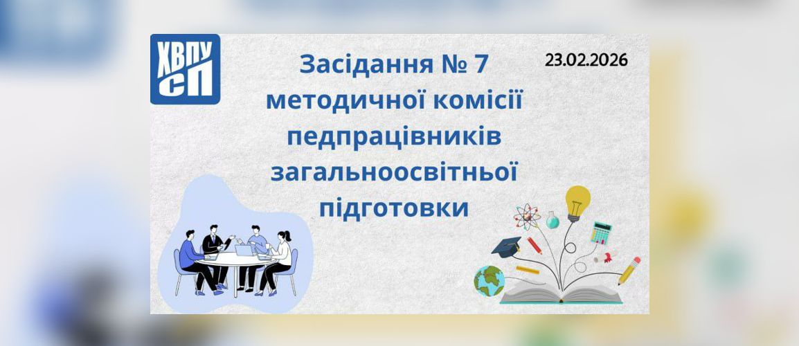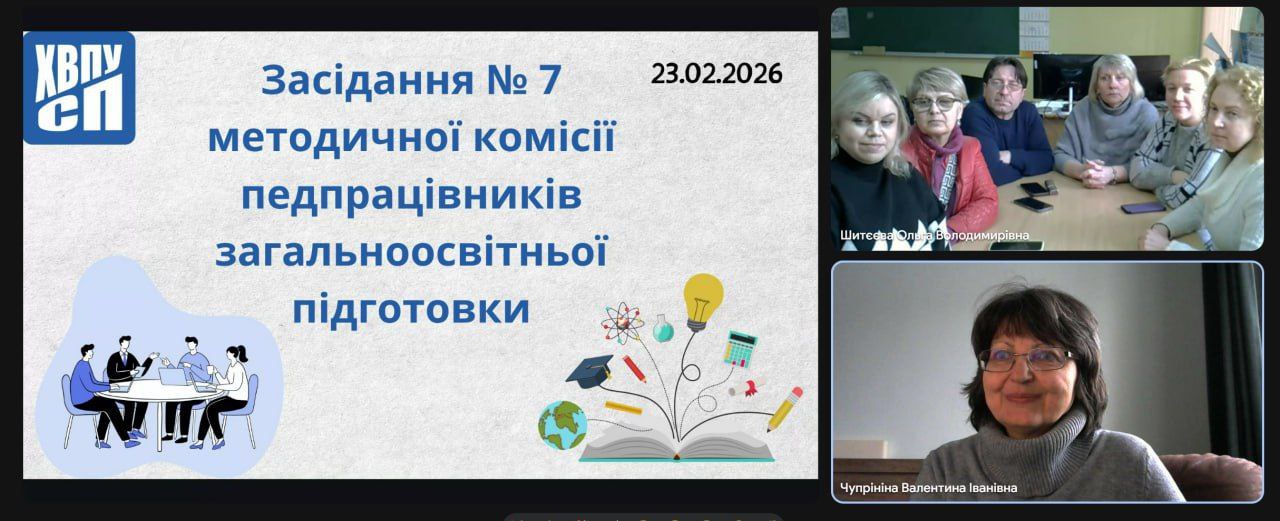 23 лютого 2026 року у ХВПУСП відбулося чергове засідання №7 методичної комісії загальноосвітньої підготовки, присвячене ключовим питанням організації навчального процесу та професійного зростання педагогічного колективу. Зустріч пройшла у змішаному форматі за участі викладачів та адміністрації.