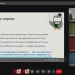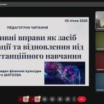 Викладач фізичної культури Шитєєва Ольга Володимирівна ознайомила колег з темою «Імерсивні вправи як засіб релаксації та відновлення під час дистанційного навчання», яка є особливо актуальною в умовах «екранної втоми», гіподинамії та психічного стресу. Імерсивні вправи допомагають відволіктися від побутового шуму та домашніх завдань, що особливо важливо при дистанційному навчанні. Колеги спробували виконати запропоновані імерсивні вправи на практиці та дізналися про: