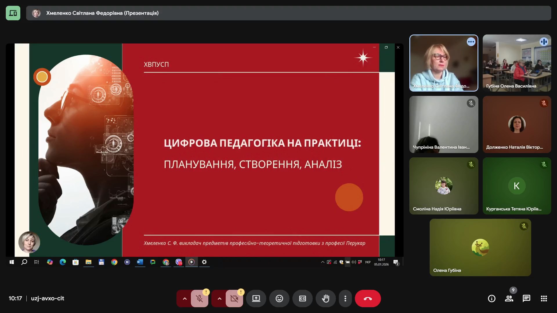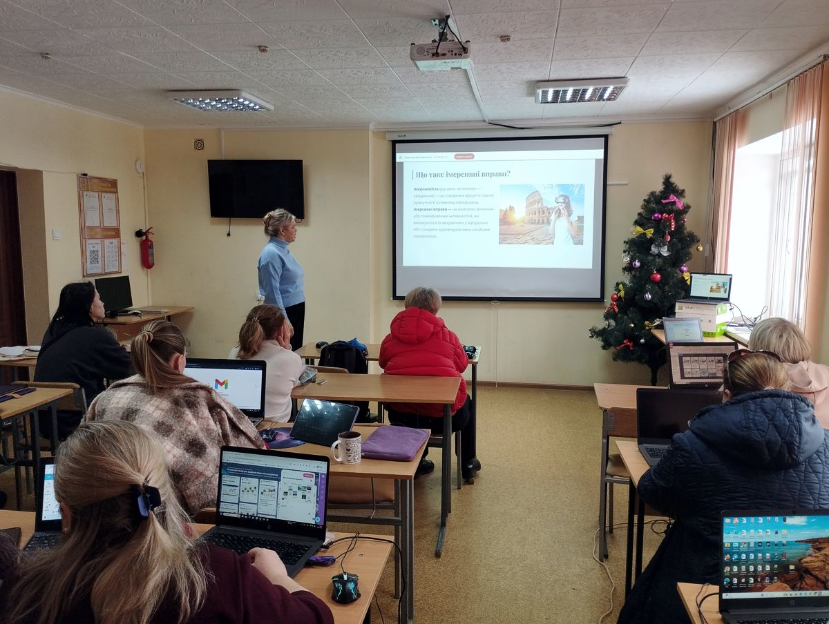 Викладач-методист Хмеленко Світлана Федорівна провела практичне заняття «Цифрова педагогіка на практиці: планування, створення, аналіз». Вона акцентувала увагу на тому, що зростаюче навантаження вимагає нових підходів до організації роботи. В своєму виступі Світлана Федорівна торкнулись таких питань: