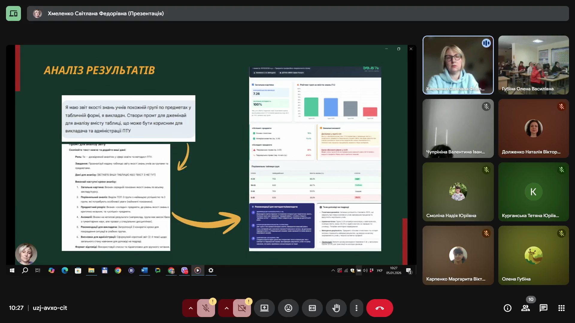 Завершилось заняття аналізом ефективності запропонованих методів. Педагоги дійшли висновку, що поєднання високих технологій (AI) з турботою про здоров’я (Immersion) є запорукою якісної сучасної освіти.