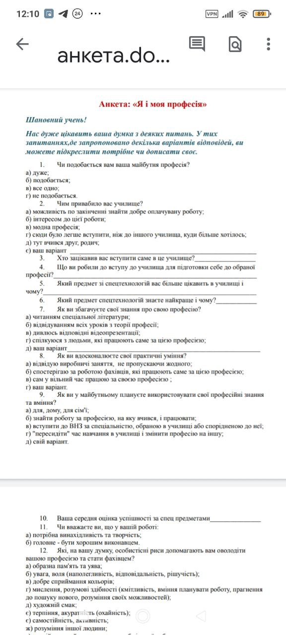 • Профорієнтаційні матеріали для випускників, що планують вступ до закладів вищої освіти