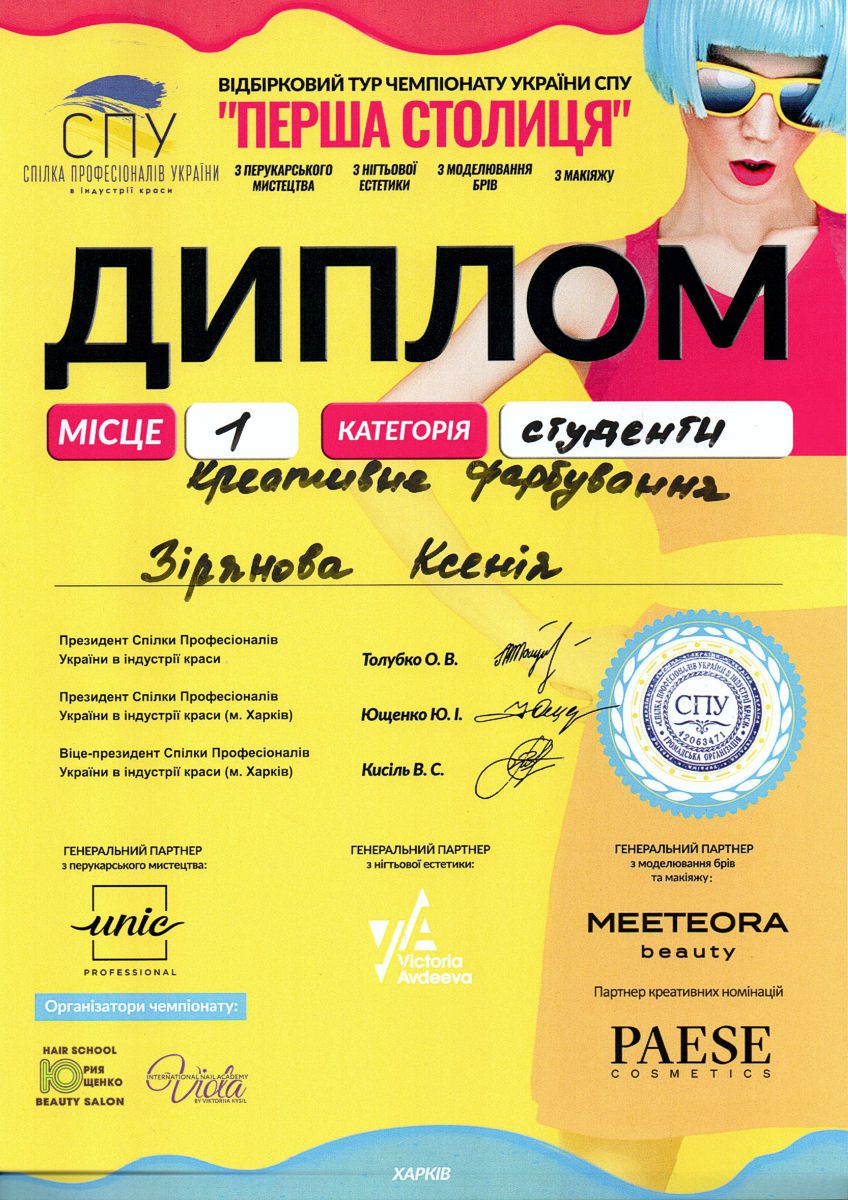 - Зирянова Ксенія – 1 місце в номінації «Креативне фарбування»