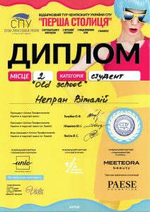- Непран Віталій – 2 місце в номінації «Old school. Авторська чоловіча стрижка»