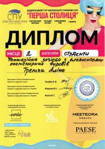 - Третяк Аліна – 2 місце в номінації «Фантазійна зачіска з елементами пастижерних виробів»