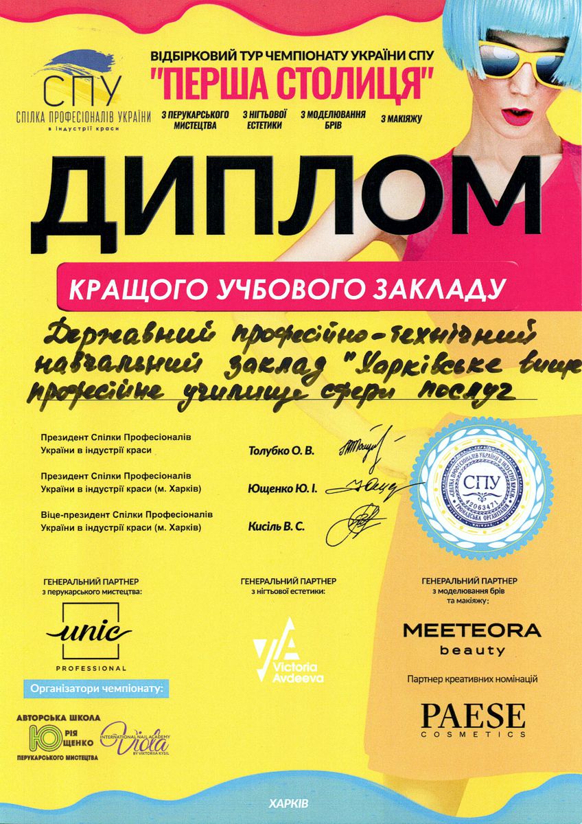 Учні Харківського вищого професійного училища сфери послуг взяли участь у змаганнях з перукарського мистецтва і макіяжу. Тренували учасників конкурсу майстри виробничого навчання з професії «Перукар (перукар-модельєр)» Кульша Лариса Сергіївна і Хряков Олександр Олександрович, з професії «Візажист» – Кононенко Наталія Валеріївна.
