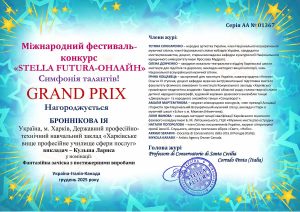 Вітаємо переможницю Міжнародного фестивалю-конкурсу «STELLA FUTURA-ОНЛАЙН» Симфонія талантів» Ію Броннікову (група 4-24 «Перукар (перукар-модельєр). Манікюрник. Педикюрник», яка отримала Гран-прі в номінації «Фантазійна зачіска з постижерними виробами»! Готувала студентку до конкурсу майстер виробничого навчання Кульша Лариса Сергіївна.