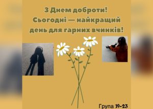 Студенти ДПТНЗ «Харківське вище професійне училище сфери послуг» приєднались до  участі у святкуванні Всесвітнього дня доброти. Створили плакати, стіннівки, зробили фото з друзями, фото з улюбленцями, про яких піклуються.