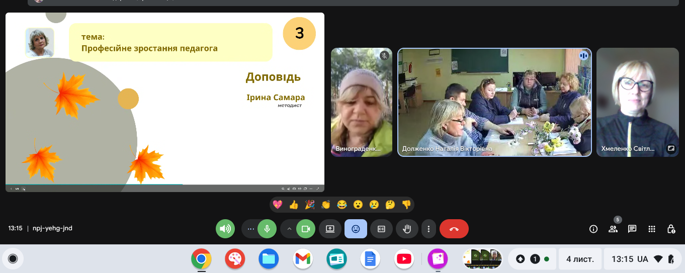 Цікавою та натхненною була доповідь Самари І. В. на тему «Професійне зростання педагога», у якій вона підкреслила значення постійного самовдосконалення, творчого підходу та використання сучасних цифрових інструментів у педагогічній діяльності.