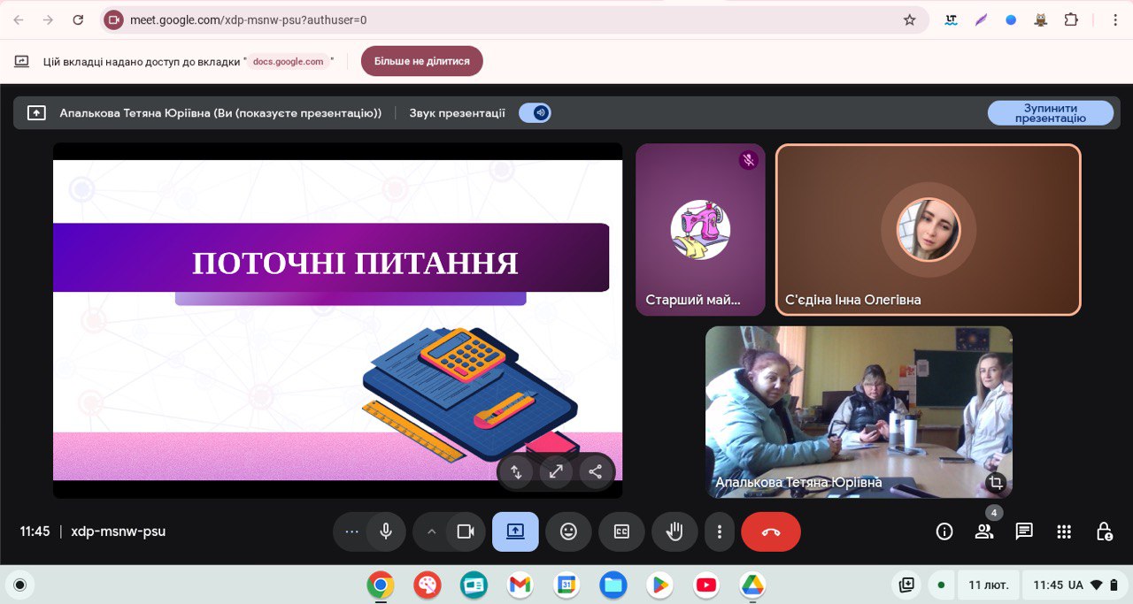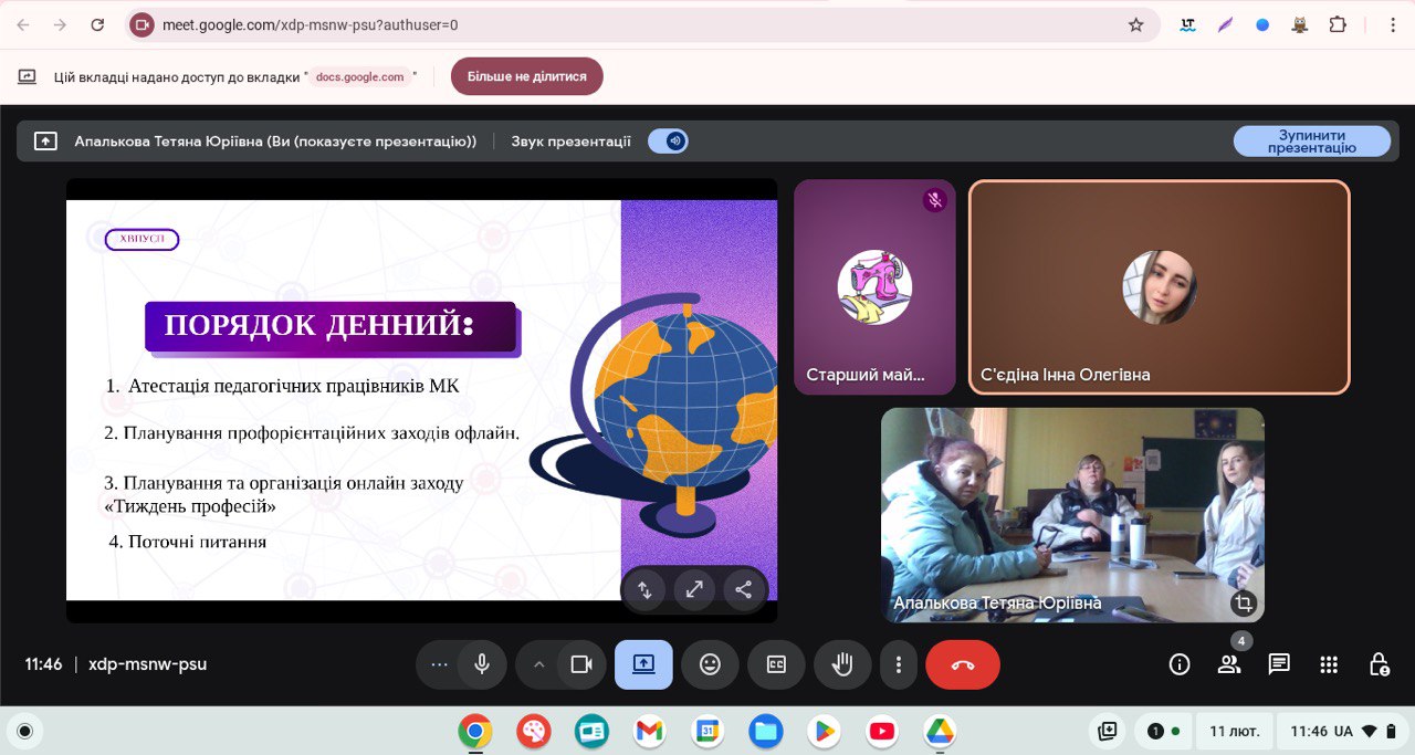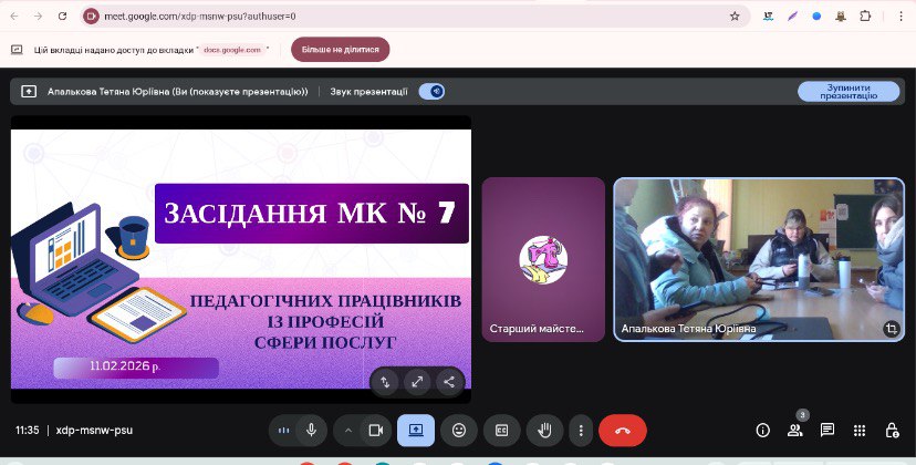 11.02.2026 в Харківському вищому професійному училищі сфери послуг пройшло засідання методичної комісії педагогічних працівників із професій сфери послуг – «Касир (в банку)», «Оператор поштового зв’язку», «Манікюрник. Педикюрник», «Візажист», «Адміністратор» під головуванням Апалькової Тетяни та у присутності представників адміністрації училища.